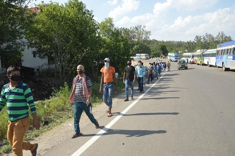 Witnessing increased footfall of labourers from the last few days, the Lakhanpur Facilitation Centre has facilitated labourers in arranging Vehicle for onward regulated movement to their respective locations. The labourers reaching Lakhanpur mostly by foot have to undergo medical screening are permitted to go in buses with half of its seating capacity to maintain social distancing norms.