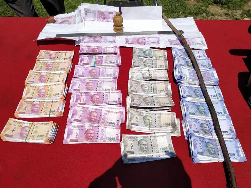 Police also seized five lakhs including 200, 500, 2000 fake currency notes, from their possession. Printing machine, papers, and paper cutting machine were also seized by the police.