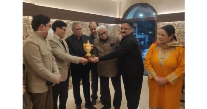 VC Jammu University, Manoj Kumar Dhar; VC Central University, Ashok Aima; Chairperson JKBOSE, Veena Pandita; Chairman Tourism Federation, Rajesh Gupta; VP Wushu Federation of India, Vijay Saraf and Adarsh Pal Gupta (PP Newsline) were also felicitated by the Advisor during the programme.