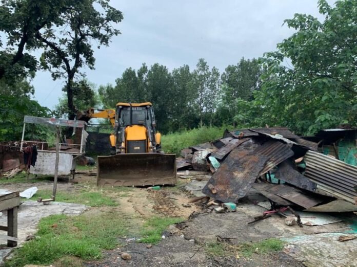 SAMBA: District administration Samba, continuing its anti-encroachment drive at Birpur, today, dismantled temporary structures and Juggies built on the state land adjoining SSS plant.