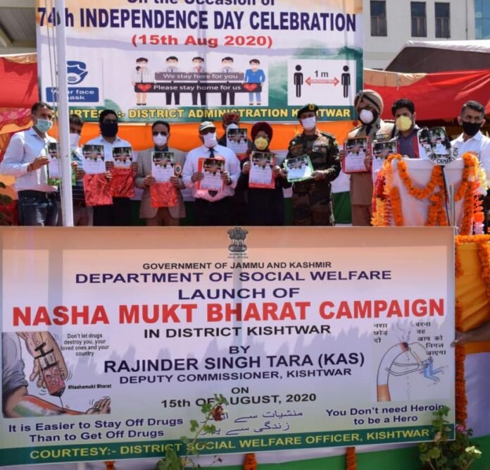 KISHTWAR: To eradicate the menace of the drug abuse, District Development Commissioner, Kishtwar Rajinder Singh Tara today launched the Nasha Mukt Bharat Campaign here on at the Independence Day function.