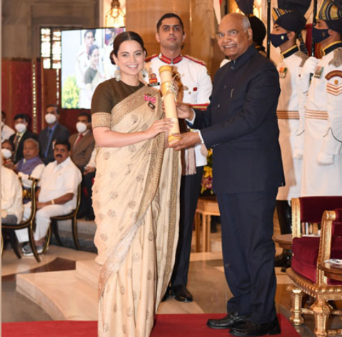 Kangana received the prestigious award by President Ram Nath Kovind at a ceremony hosted at the Rashtrapati Bhavan in the capital today.