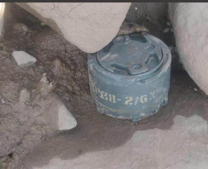 The officials said the land mine has gathered rust, indicating that it was kept hidden by terrorists operating in the area over a decade ago.